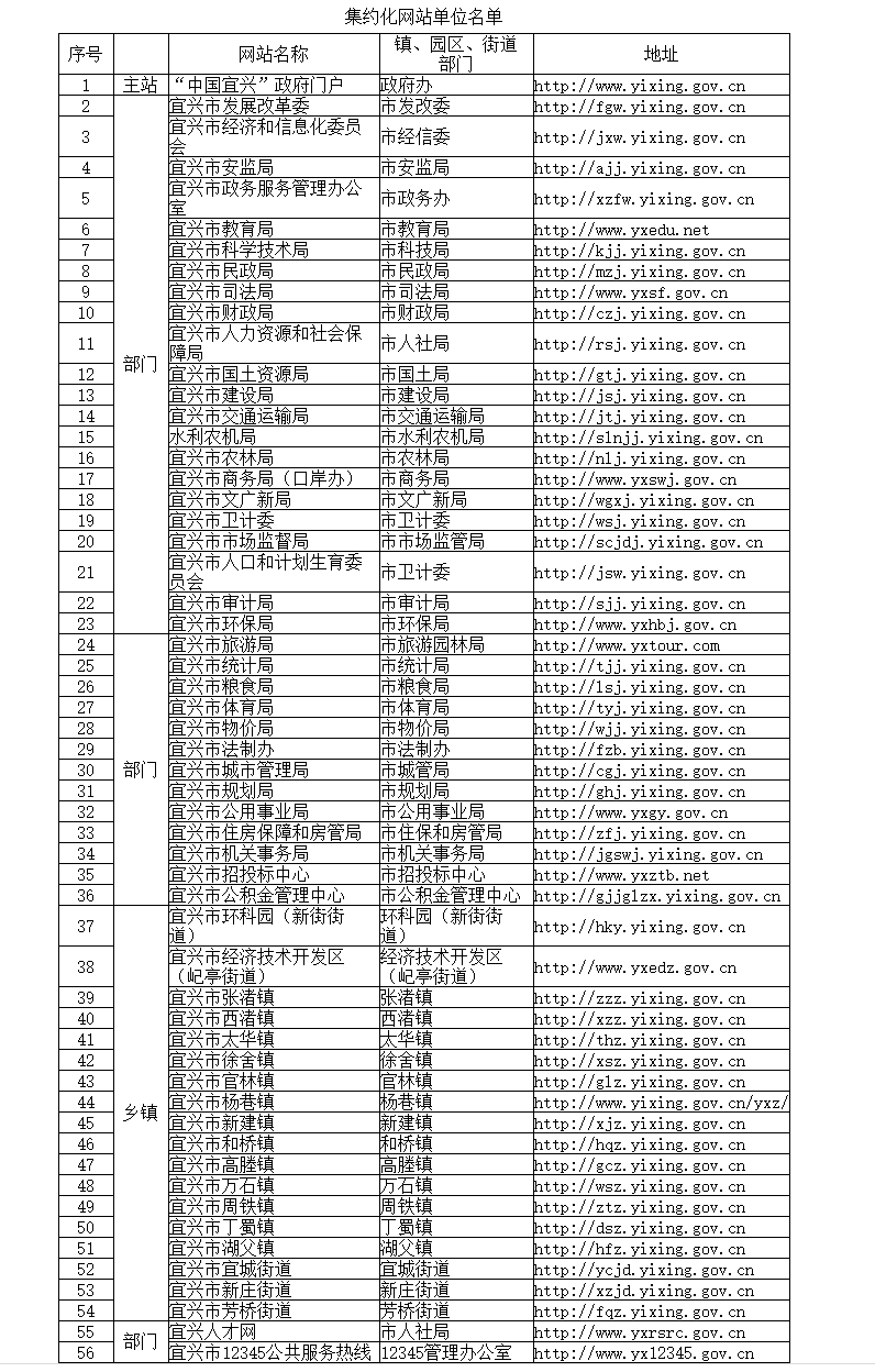 各鎮(園區、街道)及有關部門政府網站(以下簡稱“基層政府網站”)向“中國宜興”政府門戶網站遷移。