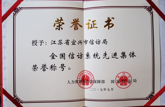 2017年全國信訪系統(tǒng)先進(jìn)集體證書