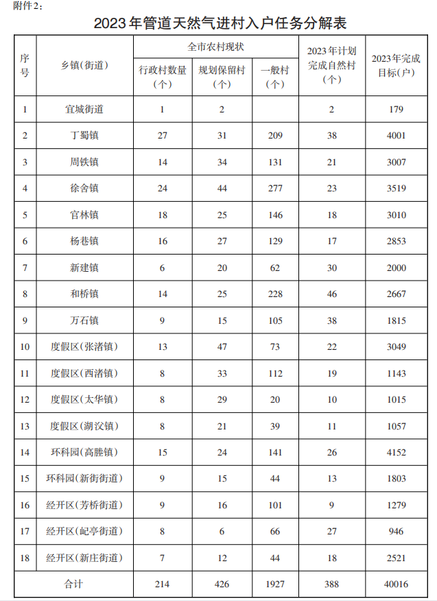 附件:1、2023年管道天然氣管網延伸拓展任務分解表;