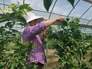 種植的紅美人橘子,還有夏黑葡萄,還有陽光玫瑰葡萄。銷路現(xiàn)在越來越好,村里把道路和綠化搞得好,人家來這里采摘的多,銷路也好,現(xiàn)在收入每年可以提高30%左右。