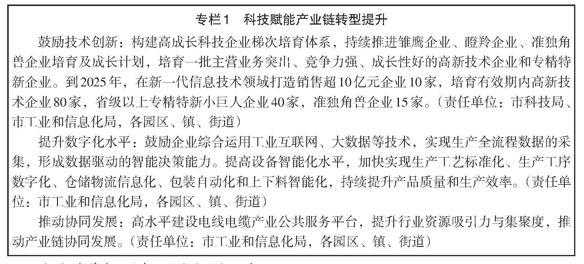(二)創(chuàng)新能力增強(qiáng)。圍繞集成電路關(guān)鍵材料、通信線纜、軟件服務(wù)等細(xì)分領(lǐng)域,培育一批有核心競(jìng)爭(zhēng)力的龍頭骨干企業(yè),形成一批有國(guó)際先進(jìn)水平的特色優(yōu)勢(shì)產(chǎn)品,發(fā)展一批創(chuàng)新能力強(qiáng)的獨(dú)角獸企業(yè)、細(xì)分領(lǐng)域單項(xiàng)冠軍和專精特新企業(yè),創(chuàng)建一批有持續(xù)創(chuàng)新能力的重點(diǎn)企業(yè)技術(shù)中心。