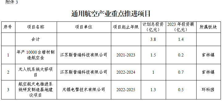 (三)產業布局進一步完善。加快推進丁蜀航空產業園建設,全力創建國家級通用航空產業綜合示范園區。圍繞通用航空產業,以及上、中、下游產業鏈的延伸配套產業,打造一批特色產業園區,持續推動產業鏈集聚發展、協同發展。