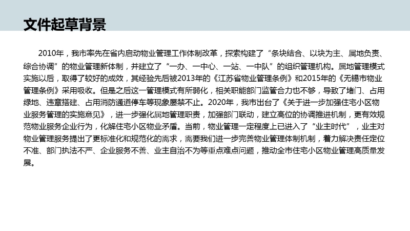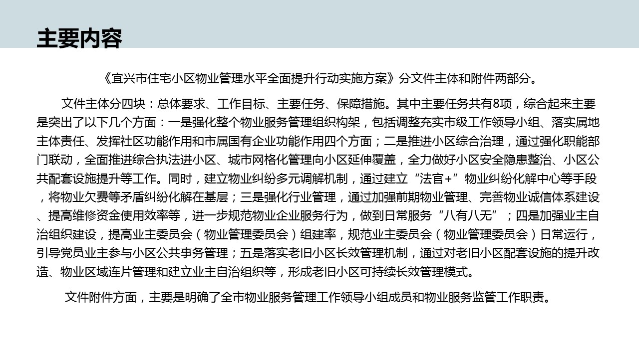 | 內(nèi)容概況 | 關(guān)于《宜興市住宅小區(qū)物業(yè)管理水平全面提升行動(dòng)實(shí)施方案》的圖解政策 | ||||