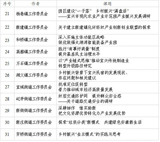為進一步調動廣大政協委員、各黨派團體、各專門委員會、工作委員會、界別活動組和承辦提案部門工作的積極性和主動性,充分發揮調查研究、提案和社情民意工作的重要作用,市政府、市政協決定聯合對2023年度承辦提案先進部門、調查研究成果獎、優秀提案和社情民意給予表彰獎勵。根據《政協宜興市委員會關于開展2023年度政協工作先進(優秀)評選表彰活動的通知》(宜政協〔2023〕14號)精神,經市政協主席會議協商通過,決定對市政府辦公室等承辦提案先進部門、《推動城鄉薄弱區域更新提升 精心塑造“美麗宜興”靚麗形象》等調查研究成果獎、《加快推動宜興制造業“智改數轉”》等優秀提案、《關于著力提升后疫情時期疾病防控應急管理能力建設的建議》等優秀社情民意予以表彰。