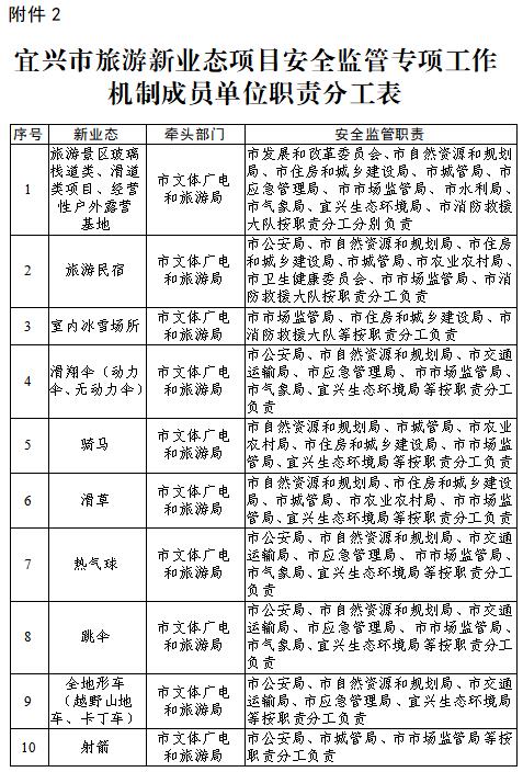 2、宜興市旅游新業態項目安全監管專項工作機制成員單位職責分工表