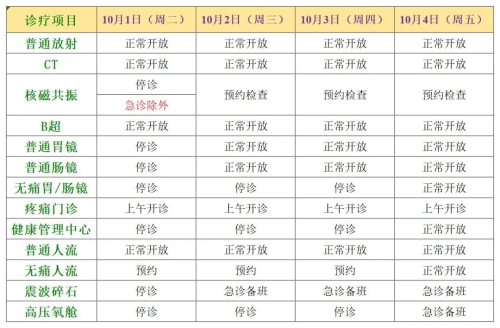 3、B超心電圖室10月7日開放,其余時間暫停。