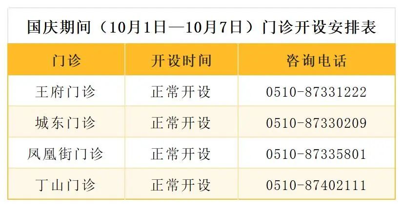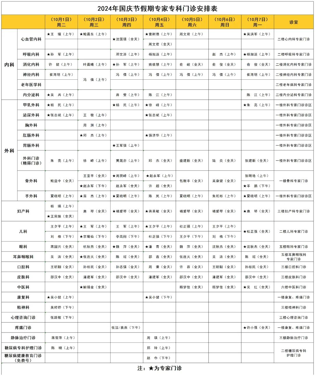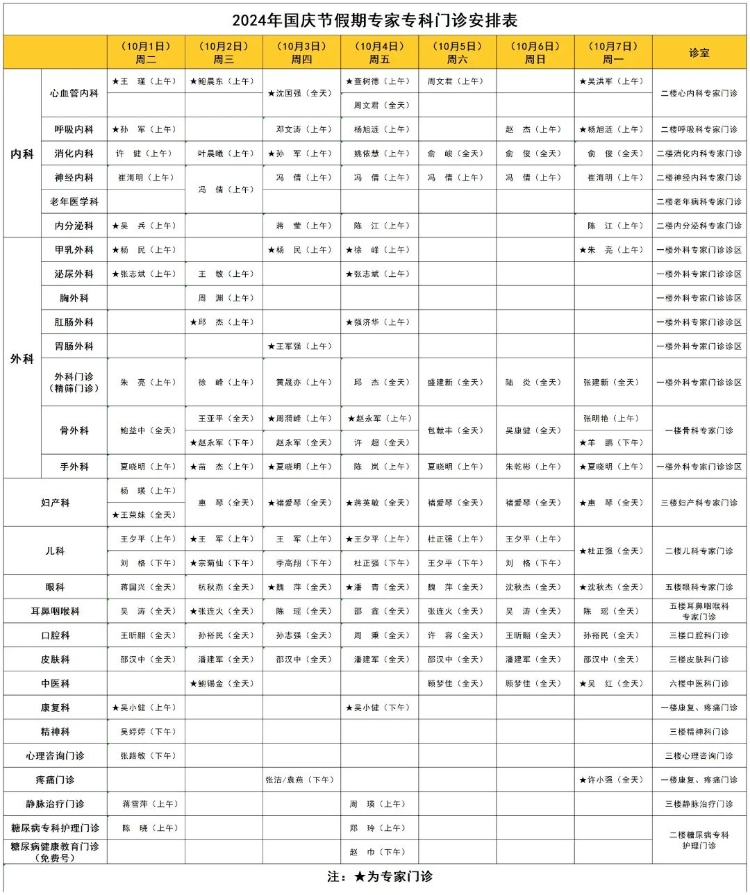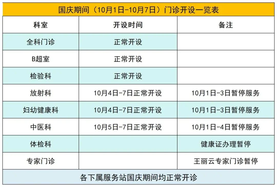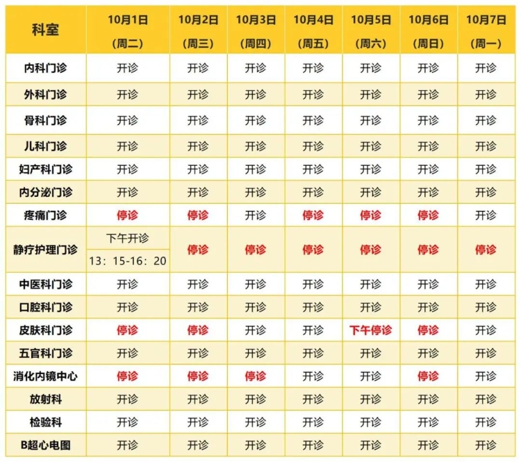 1、外科門診/精篩門診開放7天(10月1-3日上午,4-7日全天);
