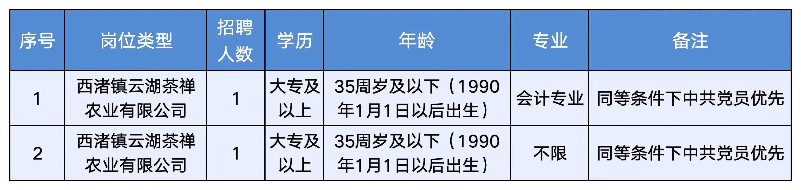 5、具有崗位要求的其他條件(詳見下方《2025年西渚鎮公開招聘云湖茶禪農業有限公司工作人員崗位簡介表》)。