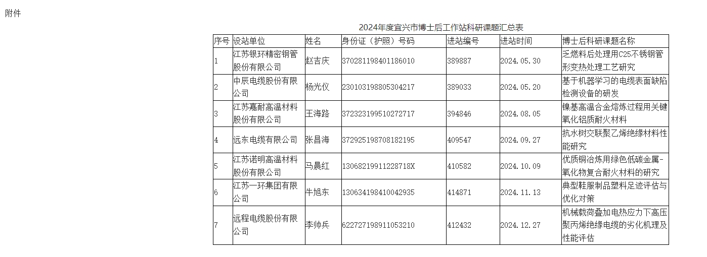 附件:2024年度宜興市博士后工作站科研課題匯總表