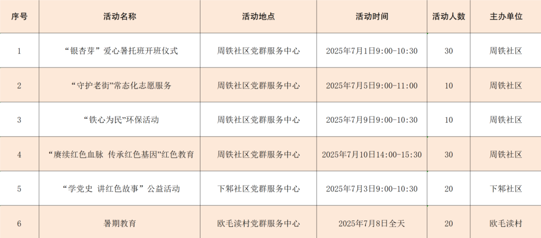 周鐵鎮(zhèn)黨群服務(wù)陣地7月份活動(dòng)清單