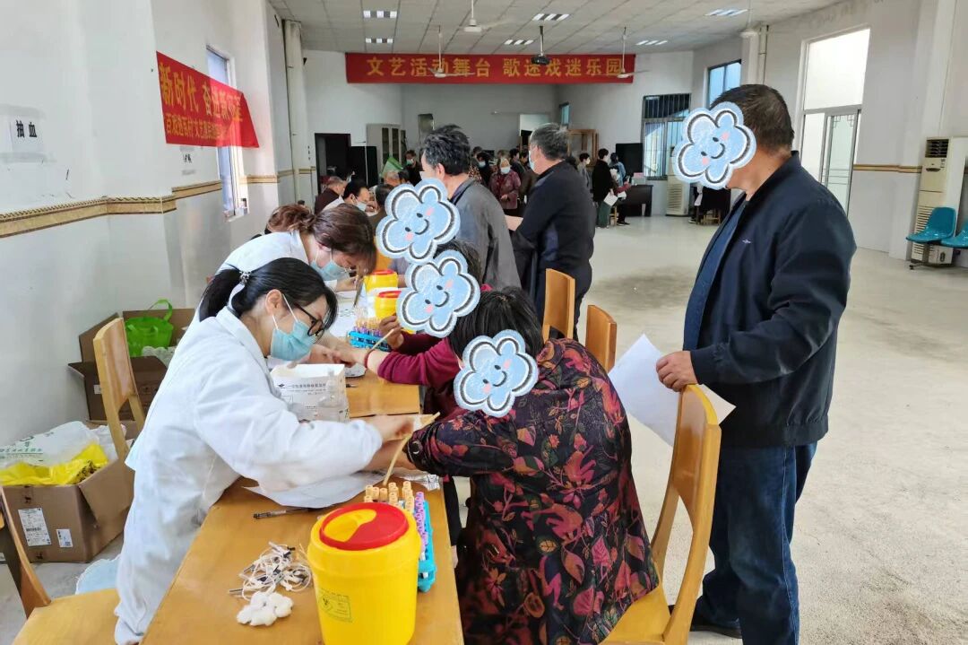 65周歲以下納入社會化管理的企業退休人員和65周歲及以上常住老年人在常規年度體檢中增加12項腫瘤標志物檢測,部分鄉鎮(街道)現場照片如下: