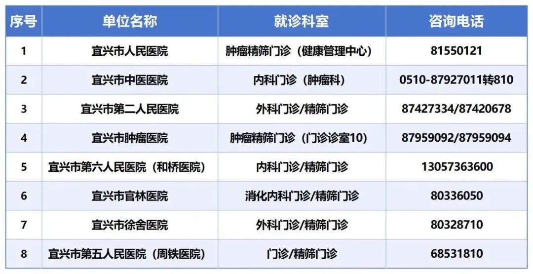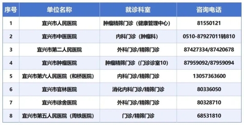 宜興市癌癥防控行動定點醫療機構