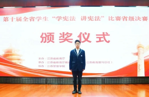 宜興市實驗中學孔煜超獲法治素養競賽特等獎(全省第一名),將代表江蘇參加全國總決賽。