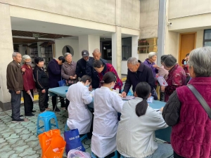 湖?鎮衛生院組織醫護人員在鎮新時代文明實踐所搭建起臨時“健康驛站”,為轄區老人免費提供血壓、血糖測量服務,以零距離的貼心守護,為老人們的健康保駕護航。