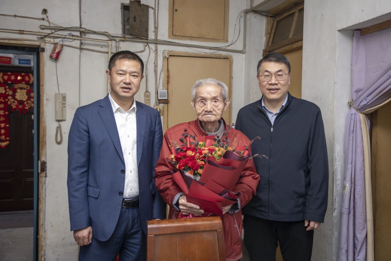 唐曉龍與朱步荊促膝交談,詳細(xì)詢問日常生活起居等情況,并為老人送上節(jié)日祝福。唐曉龍表示,百歲老人是家庭的福氣,更是社會的寶貴財富。他叮囑街道相關(guān)部門及社區(qū)不僅要落細(xì)落實老年人各項福利保障政策,更要主動上門摸排需求,及時幫助解決生活難題,讓老人生活得安心舒心。