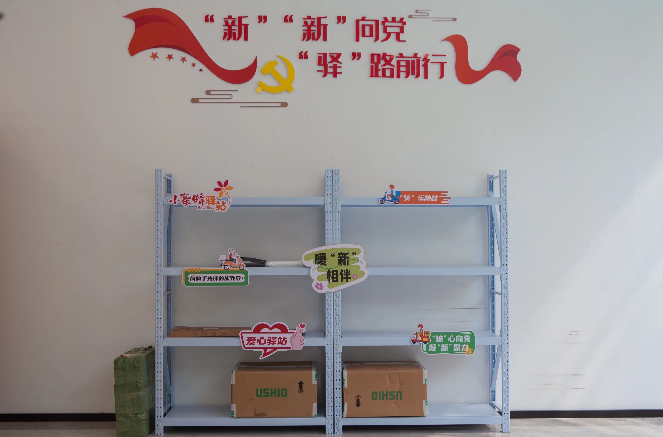 宜城街道楓隱社區(qū)關心關愛新業(yè)態(tài)新就業(yè)群體,充分發(fā)揮黨建引領作用,依托宜興市黨群服務中心優(yōu)質(zhì)陣地,打造了23㎡的“小蜜蜂驛站”。驛站設有桌椅、空調(diào)、飲用水、微波爐、免費Wi-Fi等設備,配備手機充電站、應急醫(yī)藥箱、工具箱、針線盒等用品。驛站還關注兩新群體的精神文化需求,與宜興市圖書館實現(xiàn)通借通還。