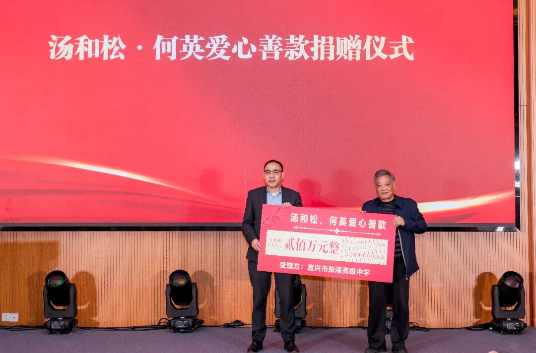 11月25日,一場充滿愛心的捐贈活動在張渚高級中學舉行。張渚高級中學杰出校友、襄禾資本創始合伙人湯和松先生及其夫人何英女士向母校捐贈200萬元人民幣,用于支持母校的教育事業,助力學子成長。