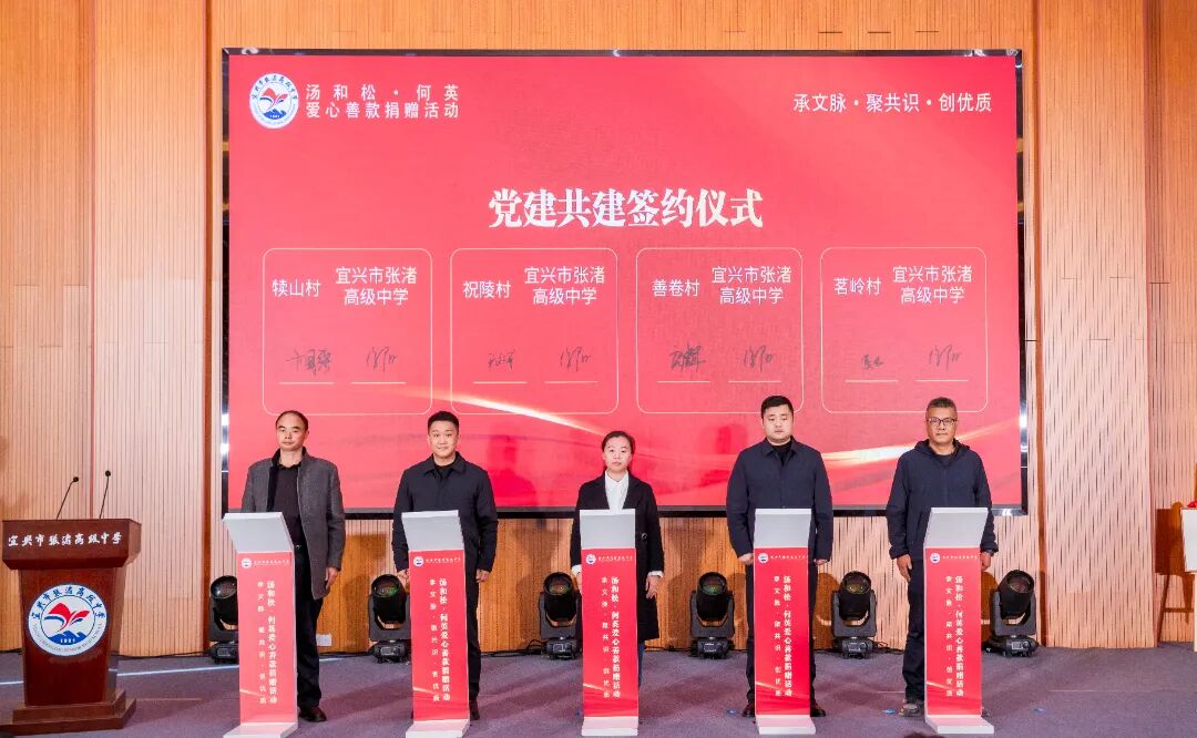 張渚高級中學歷史悠久,其前身為國山書院,百年文脈綿延至今。建校百年來,學校深深扎根張渚大地,福澤宜南山區,憑借扎實的辦學成效,為張渚鎮乃至整個宜南山區的教育事業發展筑牢根基、貢獻卓著。值得一提的是,活動現場還同步舉行了黨建結對簽約儀式,張渚高級中學分別與張渚鎮犢山村、善卷村、祝陵村、茗嶺村達成黨建共建合作,未來將以黨建為引領,深化校地聯動,進一步助力鄉村教育事業高質量發展。