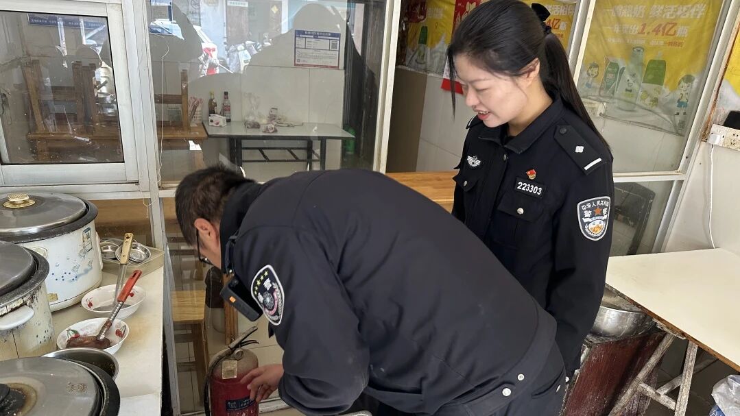 陽泉社區工作人員與社區民警重點排查商鋪內消防滅火器、應急照明燈、疏散指示標志等消防設施是否完好有效、是否在有效期內;電氣線路鋪設是否規范,有無私拉亂接、超負荷用電等情況;疏散通道、安全出口是否保持暢通,是否存在違規堆放易燃雜物、占用消防通道等問題;同時核查商戶是否落實消防安全管理制度,從業人員是否掌握基本的消防滅火、應急疏散技能。針對檢查中發現的輕微隱患,當場指導商戶整改;對無法立即整改的,下達整改通知,明確整改要求、時限,確保隱患閉環管理。