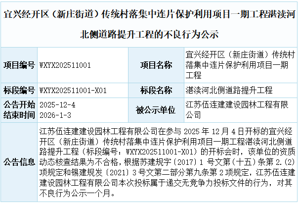 宜興市建設工程招投標不良行為公示 宜住建招公示〔2025〕第19號