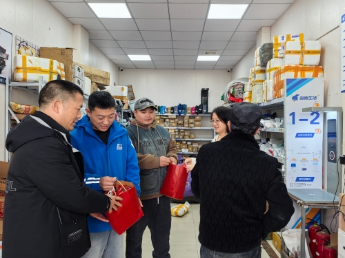 “天氣變冷,注意做好防寒措施哦!”湖?鎮志愿者飽含熱情地將防寒保暖大禮包遞到快遞小哥們手中,這是12月5日發生在湖?鎮快遞驛站的一幕。