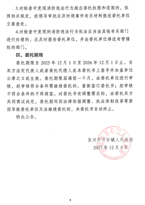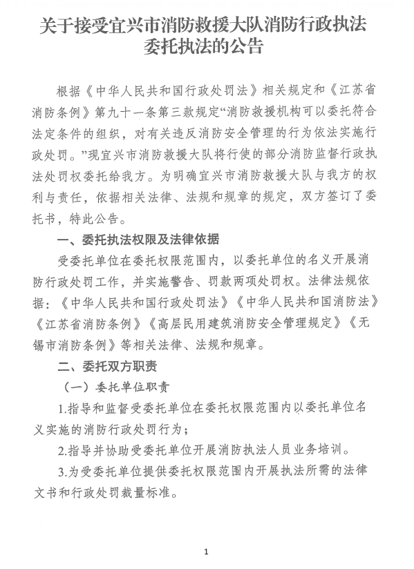 關于接受宜興市消防救援大隊消防行政執法委托執法的公告